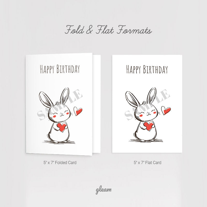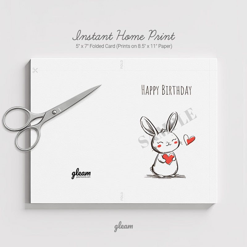 Printable Birthday Card – Bunny with Heart | Instant Download for All Ages