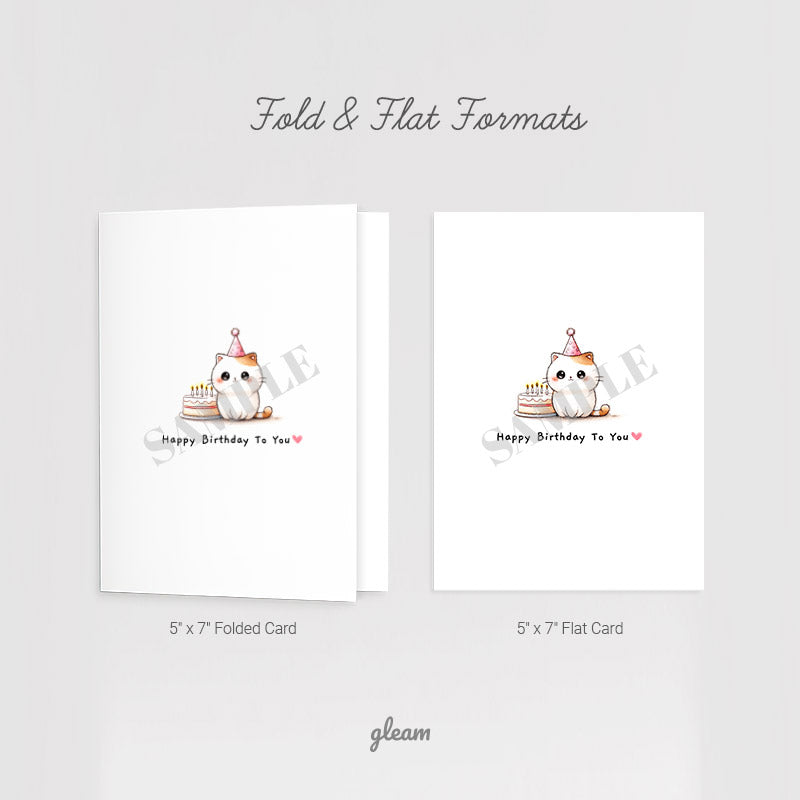 Celebrate birthdays with this adorable kitty card featuring a party hat and cake.