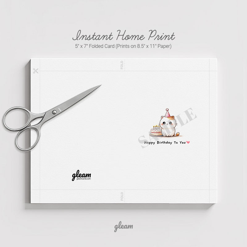 Printable Birthday Card – Cute Kitty with Cake | Cat Lover Card, Instant Download