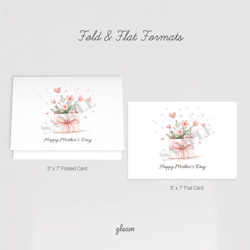 Mother’s Day Card – Watercolor Flowers & Gift Ribbon