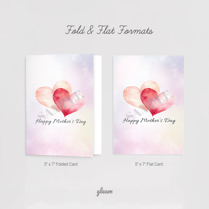 A sweet watercolor design with two hearts in soft shades of pink and red. A warm and simple way to say “Happy Mother’s Day” to the one you love most.